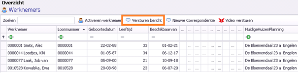 Een wegomlegging, een internetstoring of schilder die langskomt: soms is het handig als je iedereen in een huisvestingslocatie een bericht kunt sturen om ze te informeren. Communiceren met alle bewoners doe je in Plan4Flex via het werknemersoverzicht.